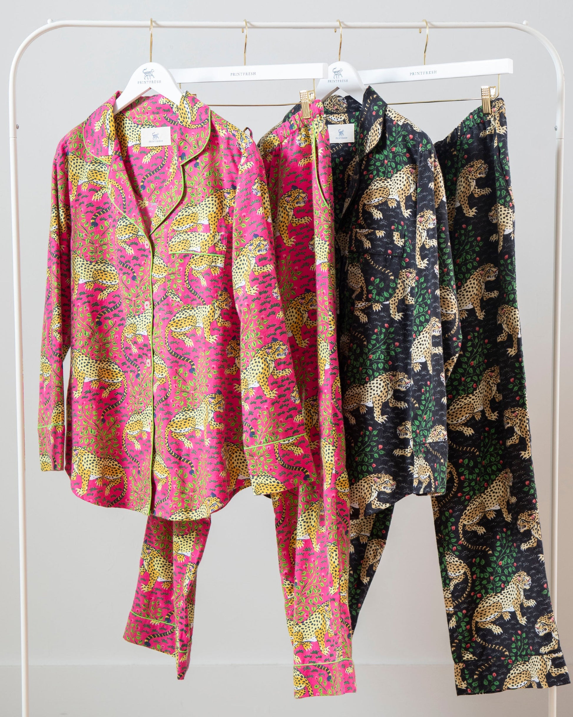 - The Pattern: Vintage textiles, antique paintings of large jungle cats and decorative flora were brought together to create these fan-favorite leopard print pajamas. Poised as she is fearsome, Bagheera knows when to quietly sit beside an asoka bush and when to strike.