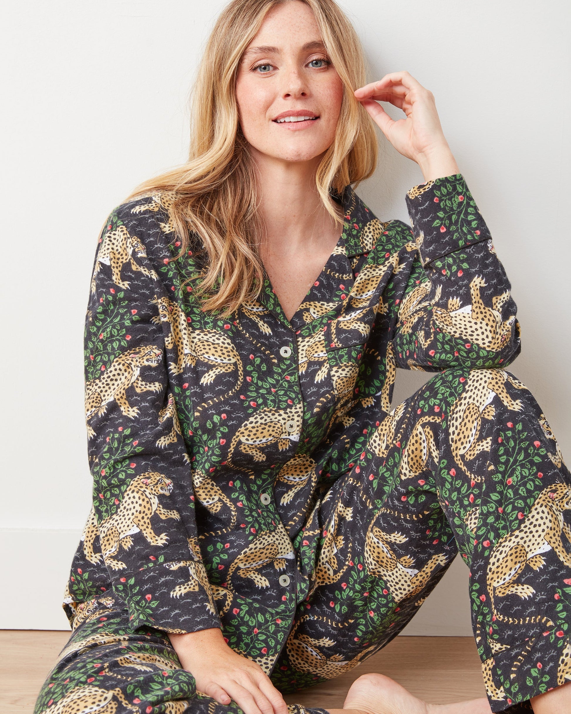 - The Pattern: Vintage textiles, antique paintings of large jungle cats and decorative flora were brought together to create these fan-favorite leopard print pajamas. Poised as she is fearsome, Bagheera (in her iconic Ink shade) knows when to quietly sit beside an asoka bush and when to strike.