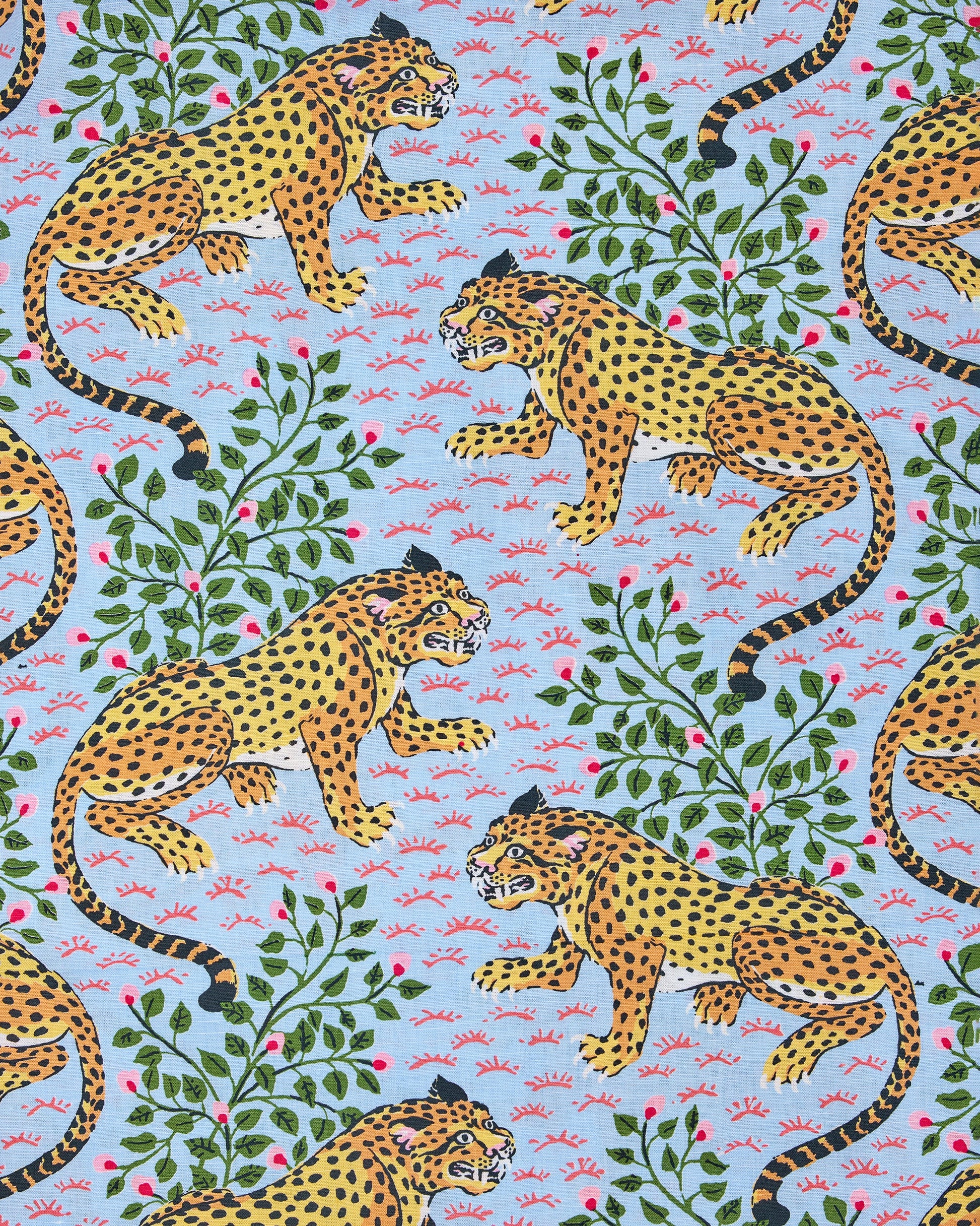- The Pattern: Vintage textiles, antique paintings of large jungle cats and decorative flora were brought together to create this fan-favorite leopard print. Poised as she is fearsome, Bagheera (in her Pale Blue shade) knows when to quietly sit beside an asoka bush and when to strike.