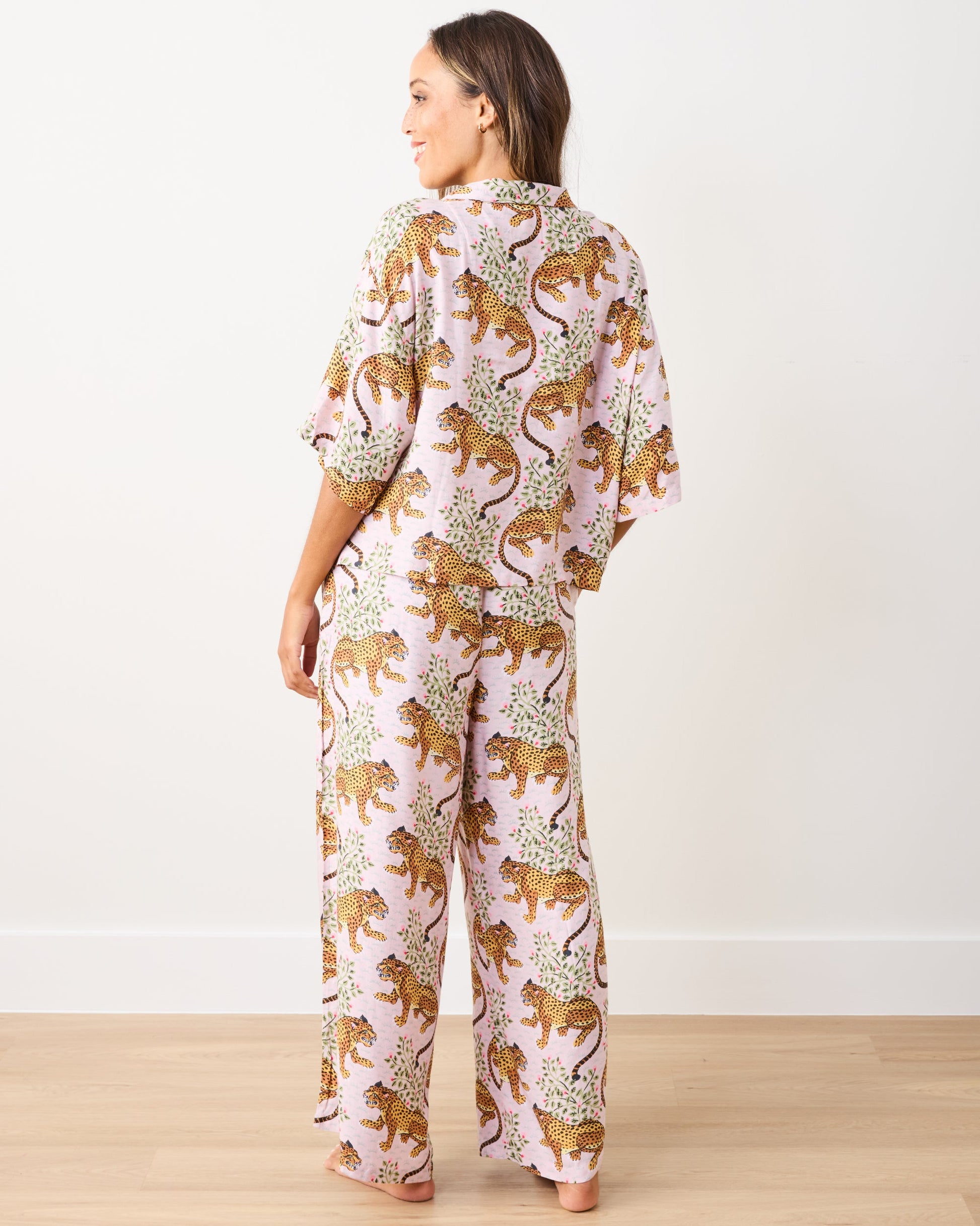 - The Pattern: Vintage textiles, antique paintings of large jungle cats and decorative flora were brought together to create these fan-favorite leopard print pajamas. Poised as she is fearsome, Bagheera (in her iconic Blush shade) knows when to quietly sit beside an asoka bush and when to strike.