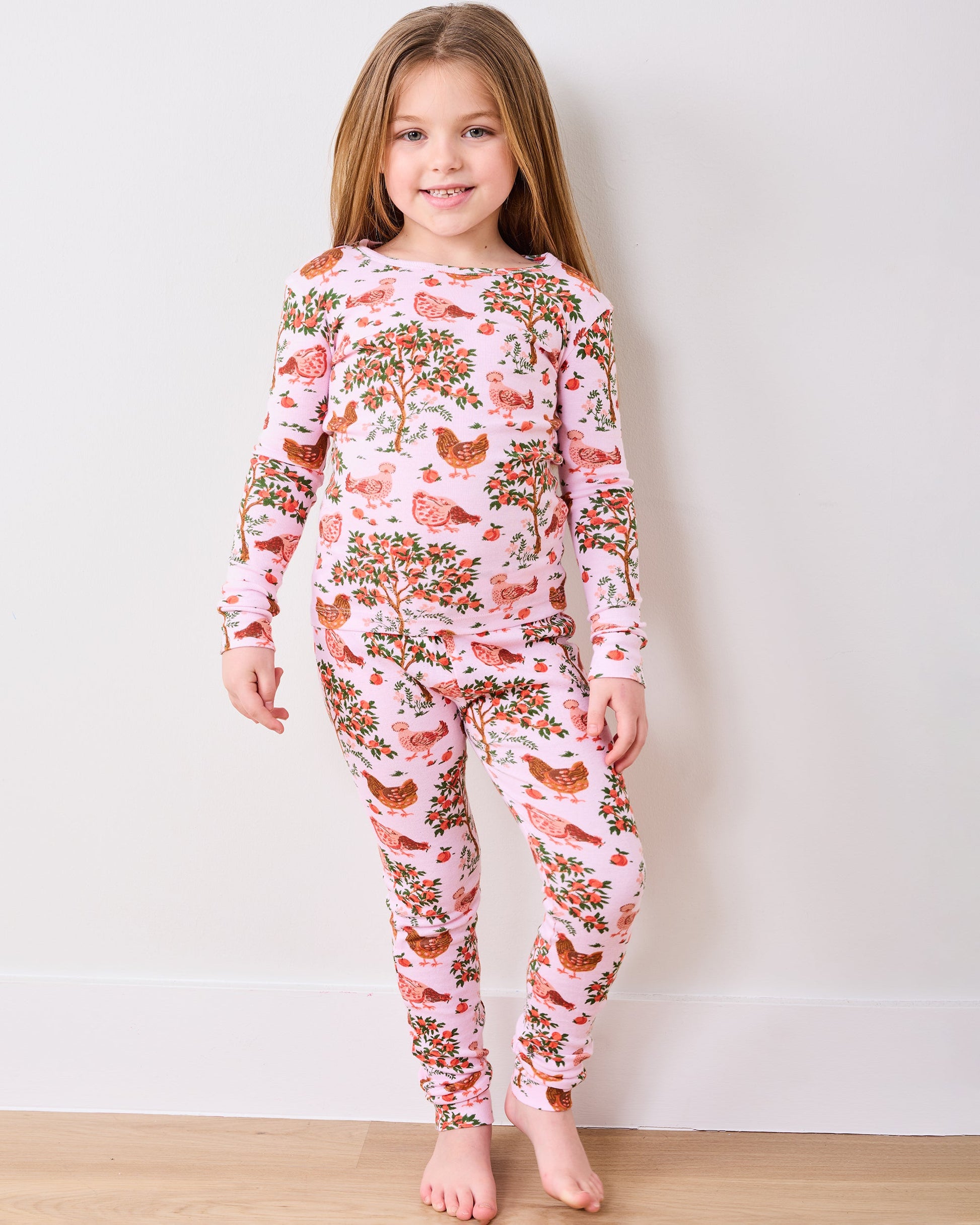 - The Pattern: The Hen House is the place to be, especially in organic cotton pajamas. Featuring an assortment of chickens enjoying a day out on the peach farm, this Ballet Pink colorway is designed to make you feel like the queen of the coop.