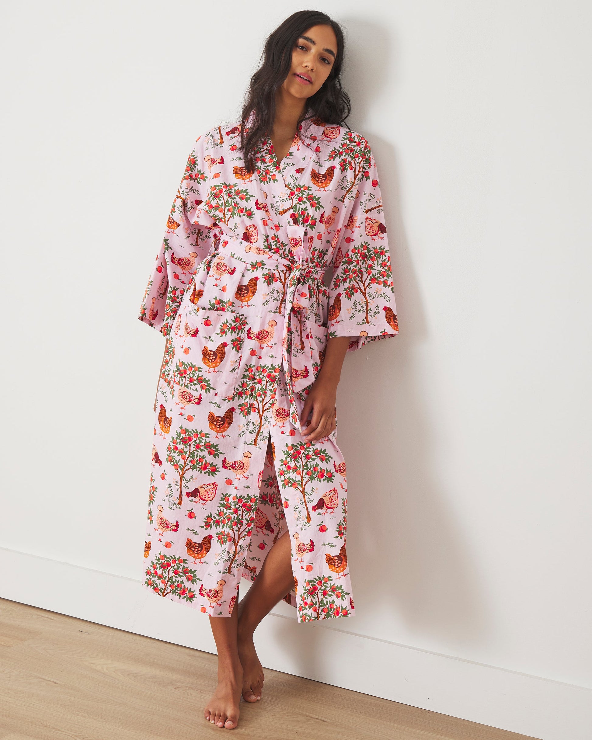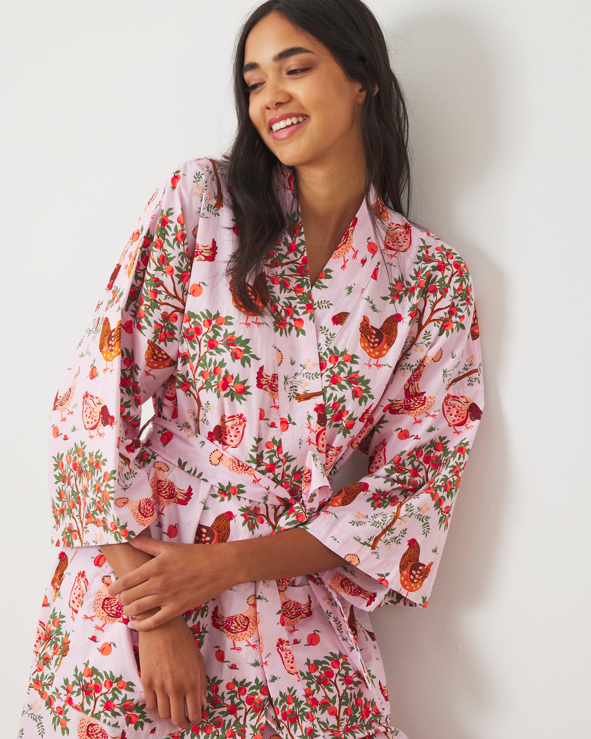 - The Pattern: The Hen House is the place to be, especially in organic cotton pajamas. Featuring an assortment of chickens enjoying a day out on the peach farm, this Ballet Pink colorway is designed to make you feel like the queen of the coop.