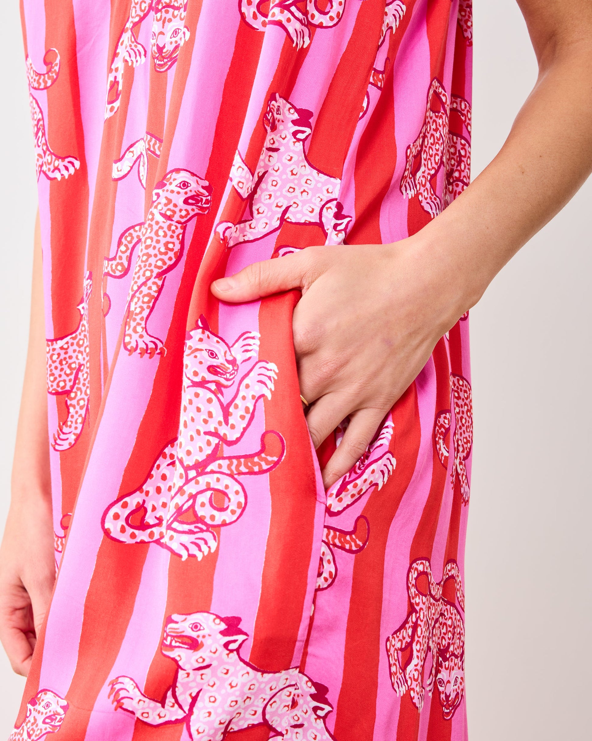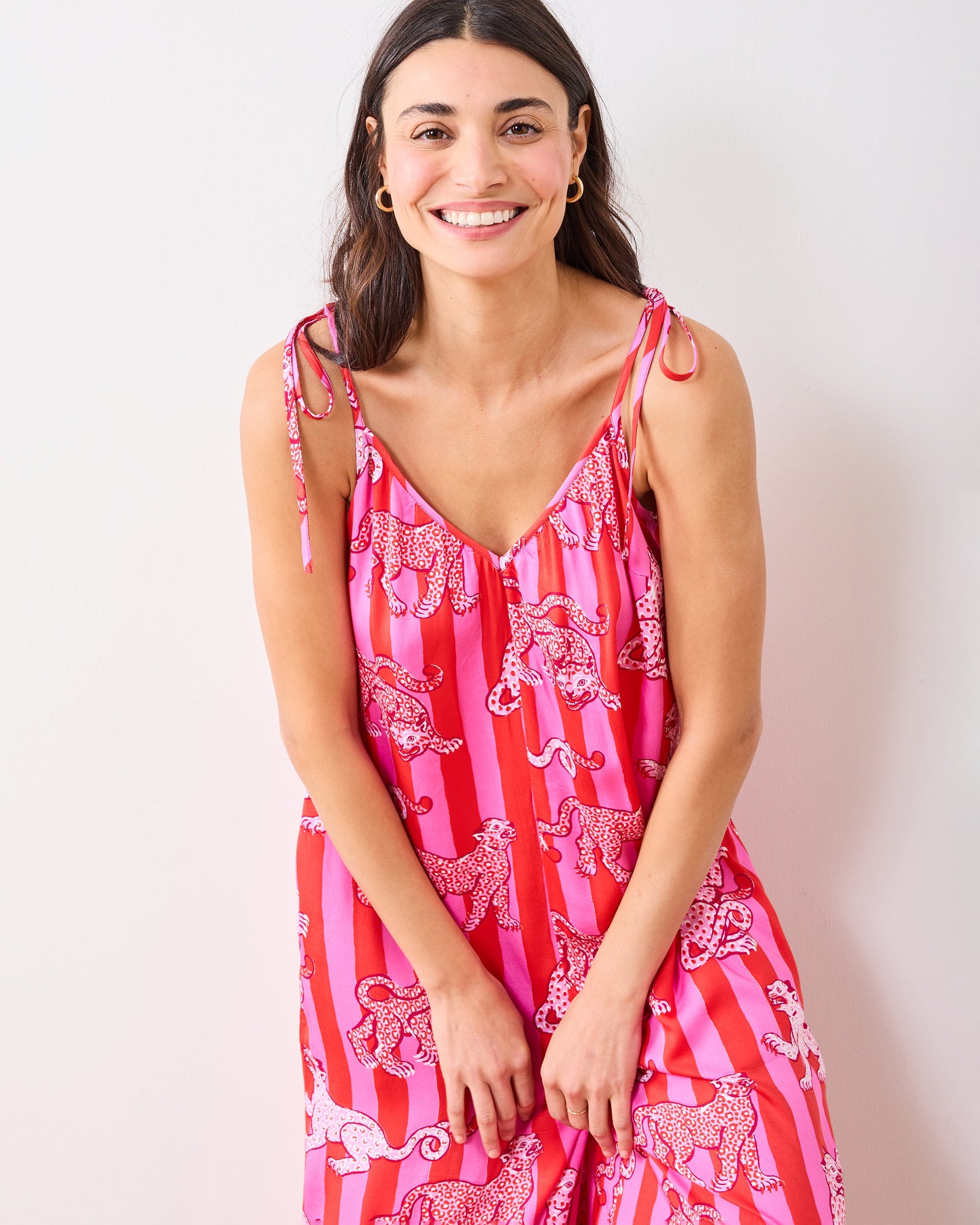 Leopard Stripes - Eco Satin Jaipur Jumpsuit - Pink Cabana
