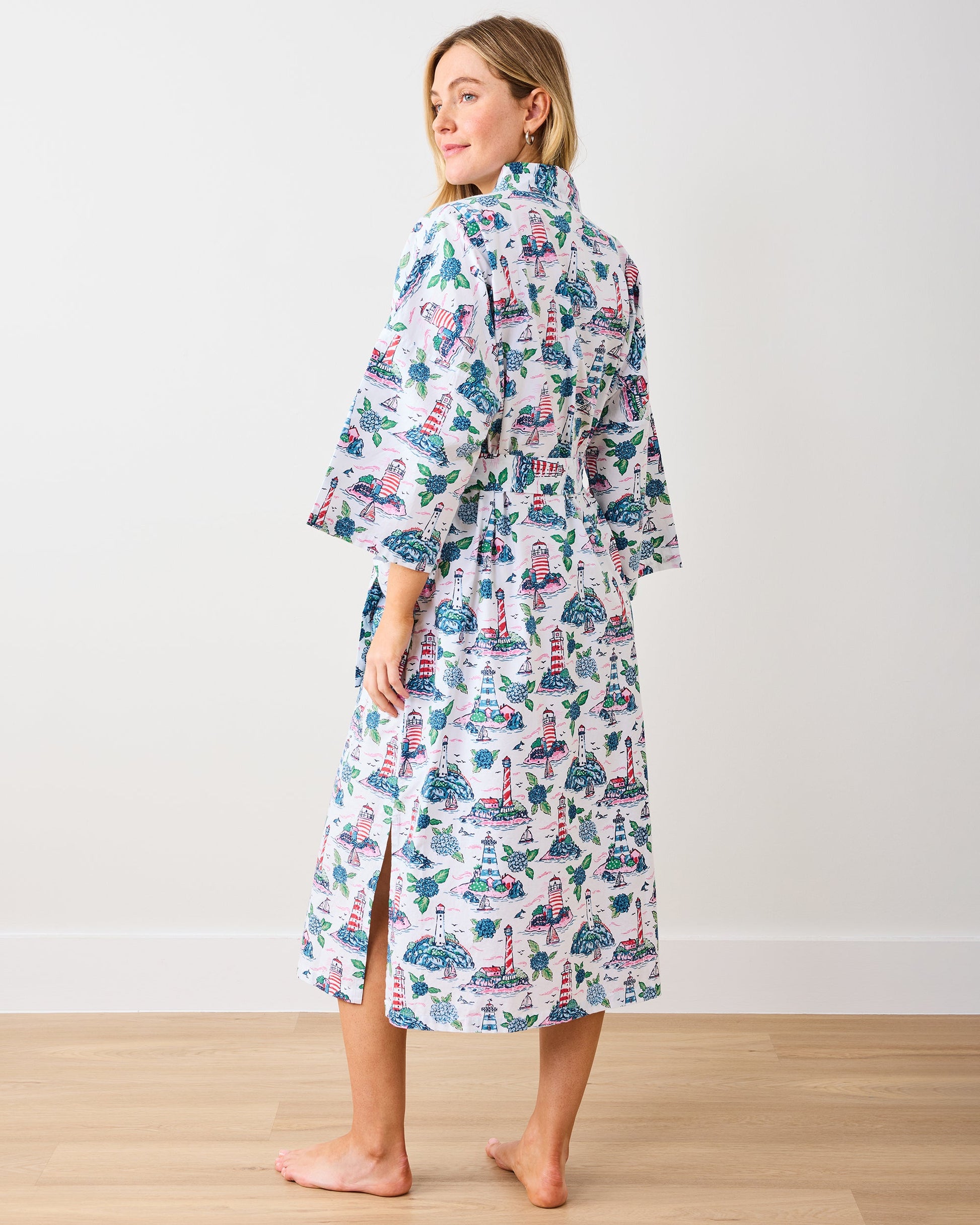 - The Pattern: Capturing the timeless charm of Nantucket, Lighthouse Keeper brings a sense of coastal tranquility to bedtime. This scenic print features iconic lighthouses, windswept dunes, and blooming hydrangeas. With delicate illustrations of sailboats drifting along the coast and a classic palette of nautical blues, crisp whites, and soft pastels, this design perfectly evokes the island’s serene beauty.