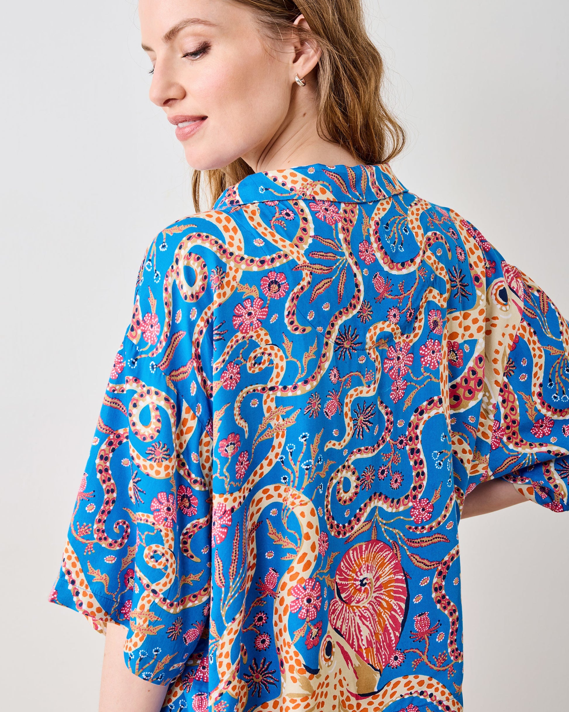 - The Pattern: The Octopus Isle collection brings a bold, oceanic allure to Eco Satin sleepwear with its striking kraken-like octopuses weaving through deep-sea blues and swirling currents. This silky, sustainable fabric drapes effortlessly, blending mystery and elegance with a touch of nautical drama. Perfect for those who dream of uncharted waters, Octopus Isle is where coastal charm meets fearless adventure.