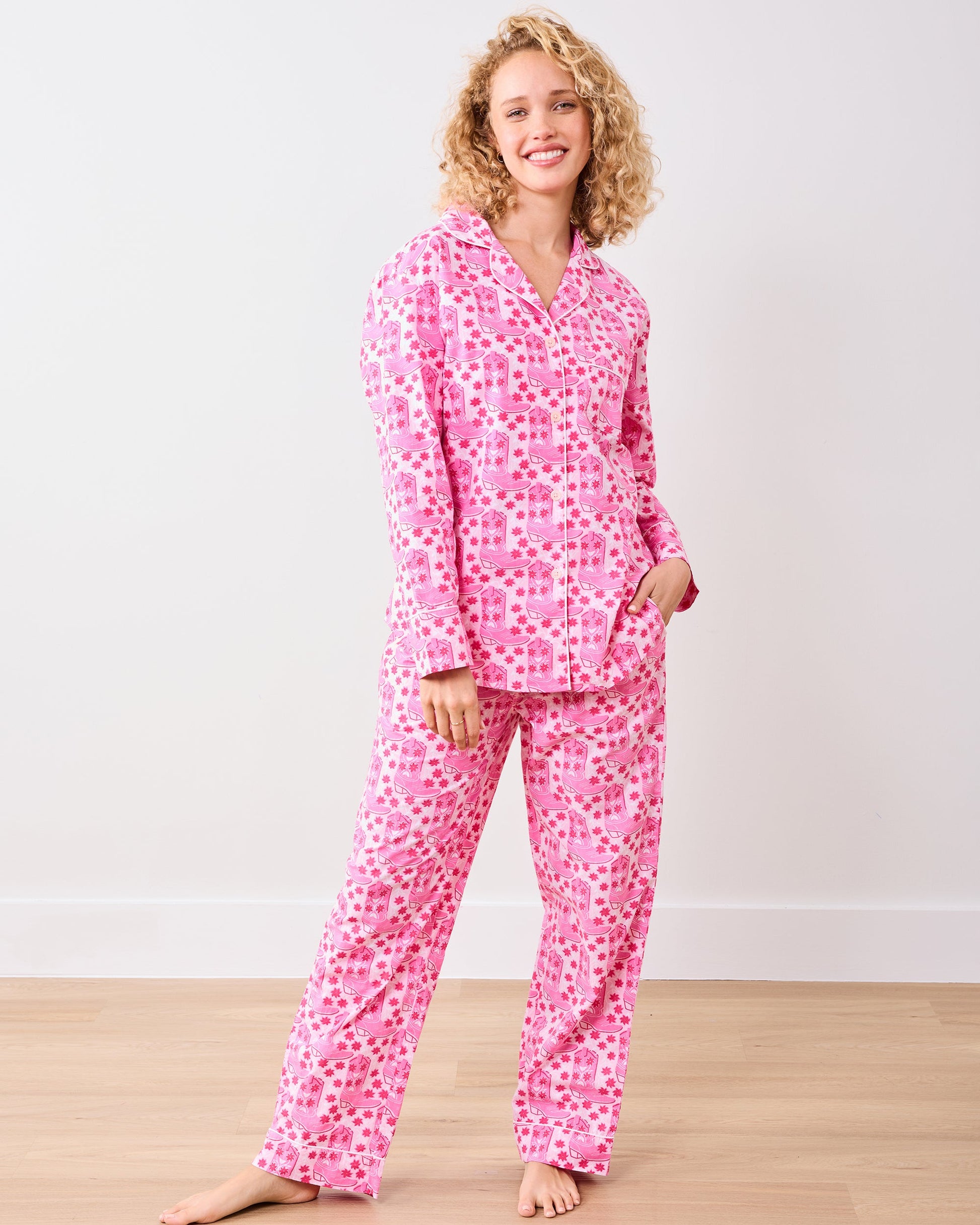 - The Pattern: Feel like a Rhinestone Cowgirl in our all-new boot-printed pj collection. Worthy of any Austin or Nashville night, bachelorette party, or girl’s trip, this organic cotton sleepwear capsule is more fun than a Honky Tonk. Hand-painted western boots are designed to feel almost flowery from a distance for a unique pattern we can’t help but tip our hats to.
