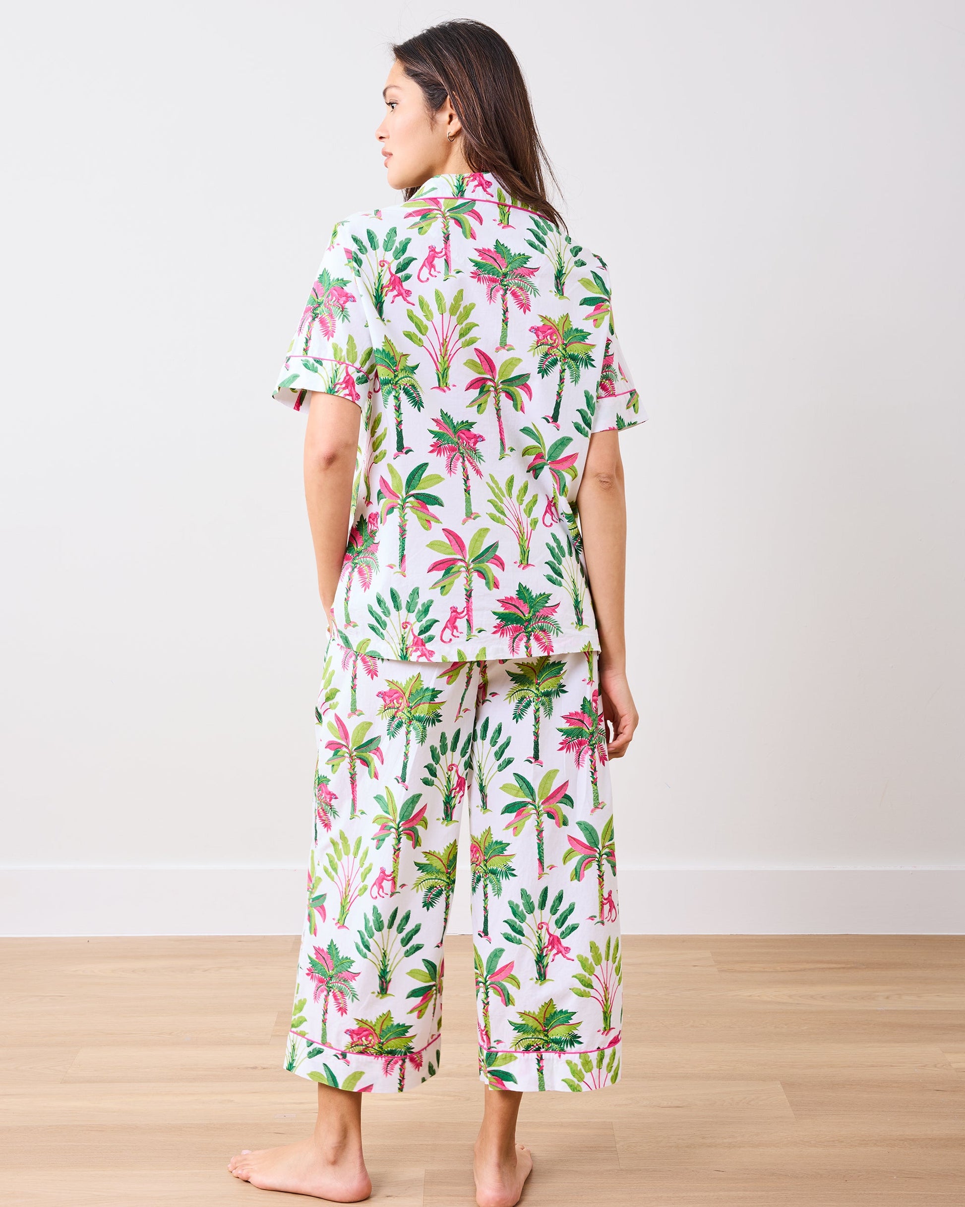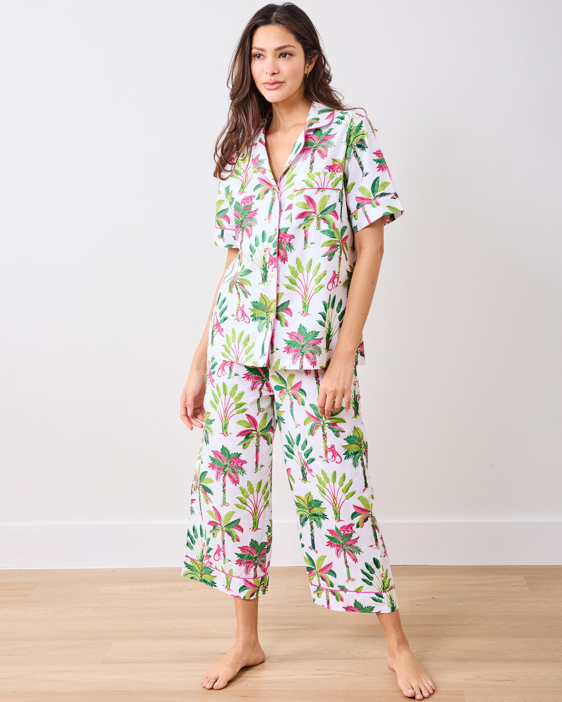 Royal Palms - Short Sleeve Top & Cropped Pants Set - Pink Basil