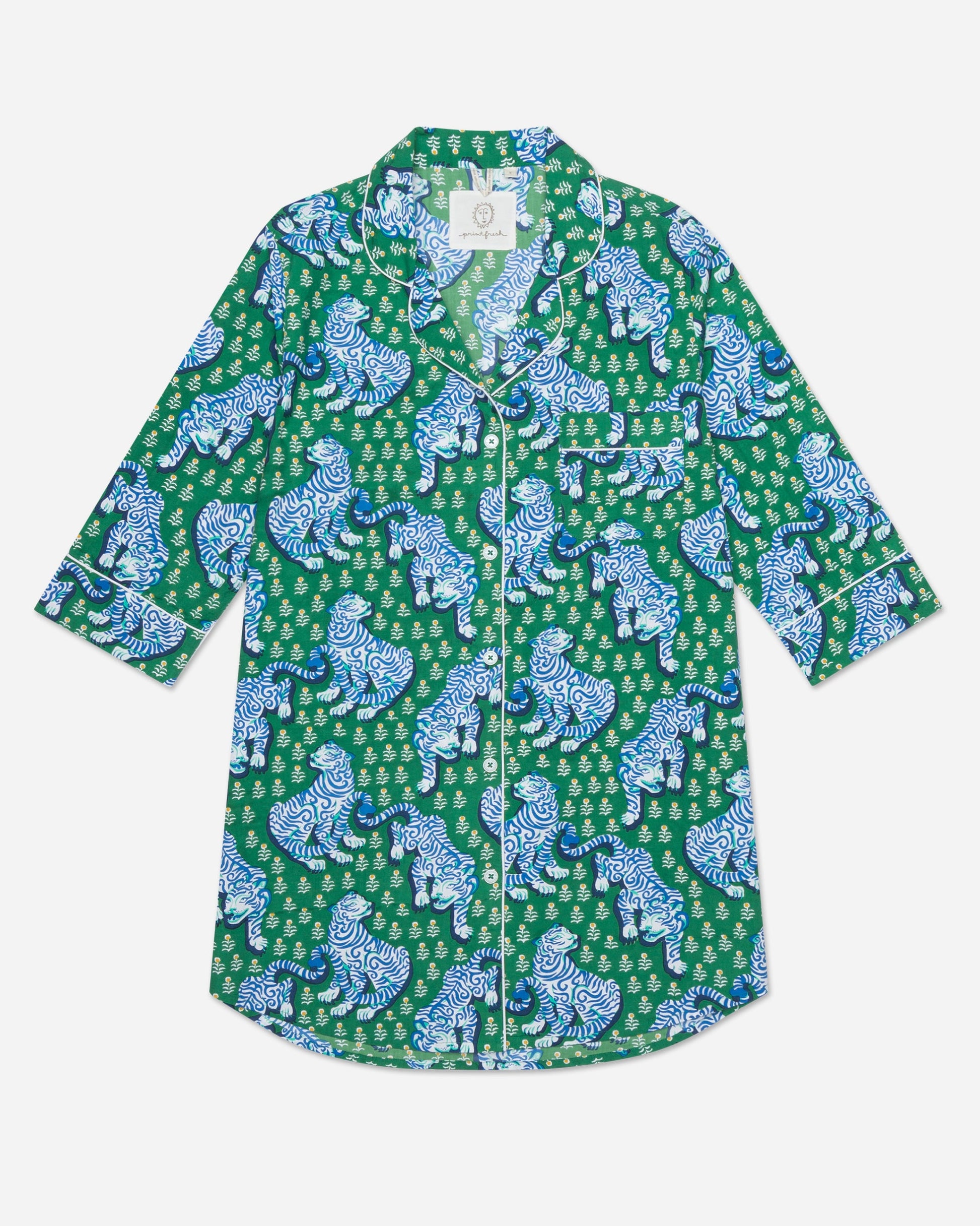 The Pattern: Royalty has taken the throne with this fresh Jade colorway that’s lush and ready to be adored. Our beloved big cat is fierce, fabulous and always on the prowl for the best kind of nap. To learn more about the print, The Collection: A fan-favorite print, our Tiger Queen collection is the perfect way to earn your Printfresh stripes. Drawing inspiration from several different antique depictions of Tigers including Korean folk art, post-impressionist paintings by Henri Rousseau, and intricate Tibetan rugs, our Tiger was painted to be both powerful and feminine.