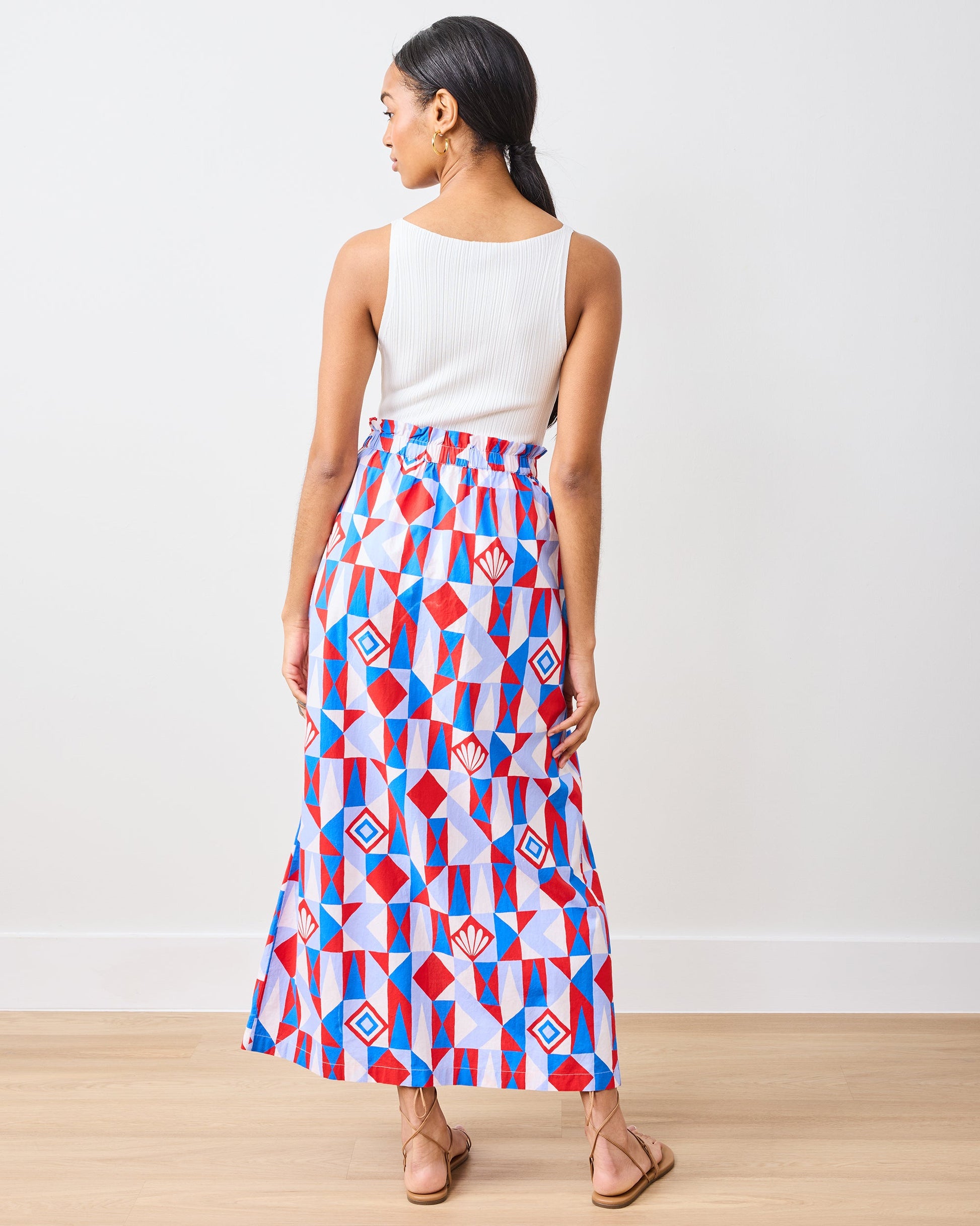 - Pull-on style skirt with a button-down front. 34" long measured on a size small.